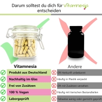 Nahrungsergänzungsmittel sind kein Ersatz für eine abwechslungsreiche und ausgewogene Ernährung. Die angegebene empfohlene Verzehrmenge darf nicht überschritten werden. Bitte außerhalb der Reichweite von Kindern aufbewahren. Eine gesunde Lebensweise sollte immer im Vordergrund stehen.